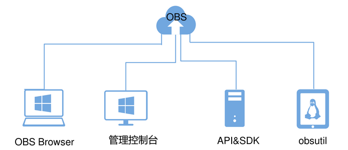 OBS支持REST API,提供多种语言的SDK,兼容主流的客户端工具,您可以随时随地通过网络上传、下载、管理您的数据。