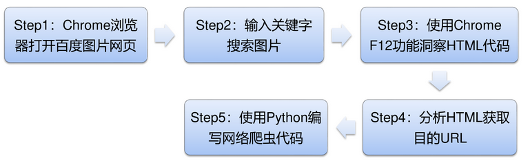 先洞察确认需要获得数据信息(本实验中的数据指的是明星图片),然后使用Python编程语言编写简单的爬虫,并将此爬虫程序封装为可交互的应用程序。