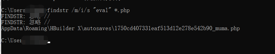 (7)搜索webshell相关内容 例如:PHP webshell findstr /m/i/s “eval” *.php(注意字符串编码格式)