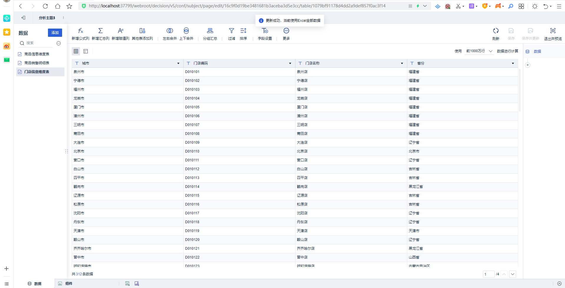 点击右上角的保存并更新,即可将本表保存到FineBI中。