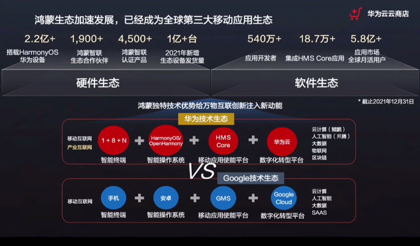 目前鸿蒙生态加速发展,现已涉及智能终端、智能操作系统、移动应用使用平台、数字化转型平台,现已成为全球第三大移动应用生态。