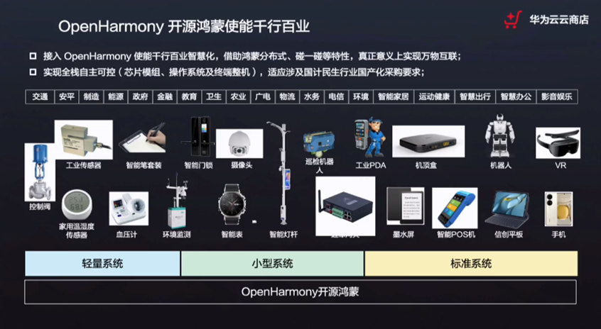 OpenHarmony开源鸿蒙现已应用于千行百业中,同时借用鸿蒙分布式、碰一碰等特性,真正意义上实现万物互联。同时通过实现全栈自主可控,适应涉及国计民生行业自研采购要求。目前OpenHarmony开源鸿蒙涉及行业包括交通、安平、制造、能源、政府、金融、教育、卫生、物流、水务等行业。