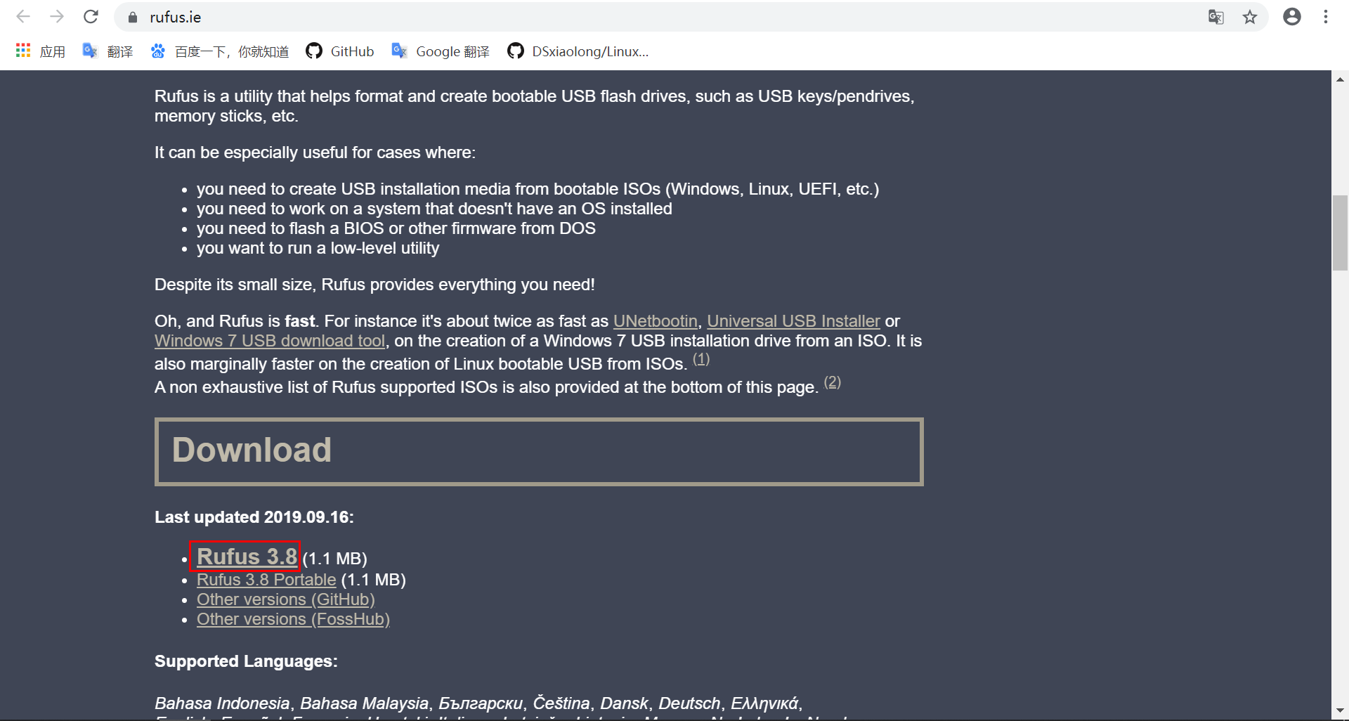 Ubuntu官网推荐的USB启动盘制作工具Rufus,此工具的特点: