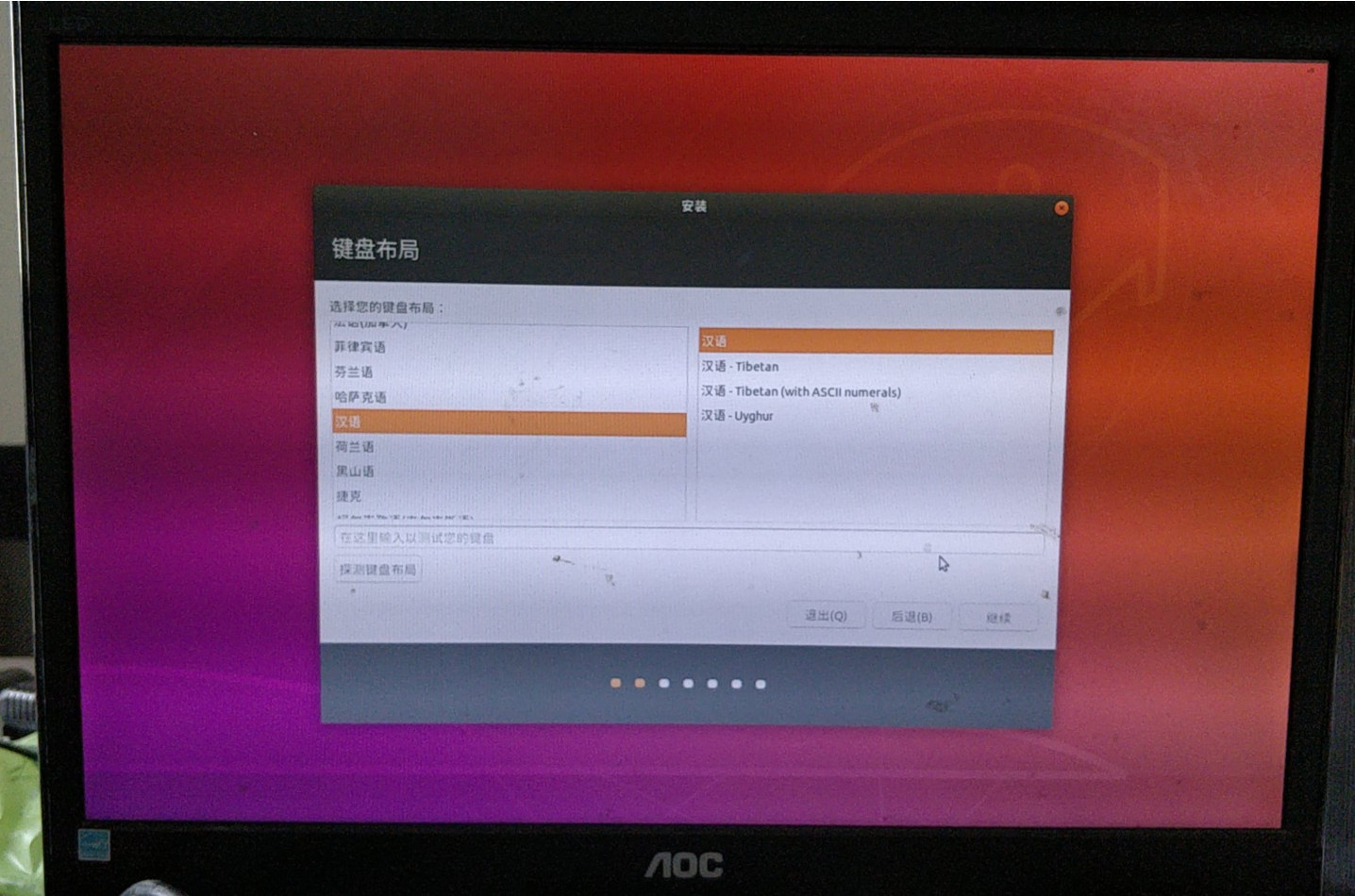 按下F10后会弹出保存界面,选择“Yes”并回车,电脑就会自动重启进入Ubuntu安装界面,这时候就可以根据引导安装系统了。 安装系统的过程与虚拟机里安装ubuntu一样,跟着引导项继续就行了。