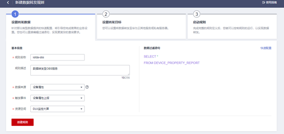 选择左侧导航栏的“规则>数据转发”,单击右上角的“创建规则”。