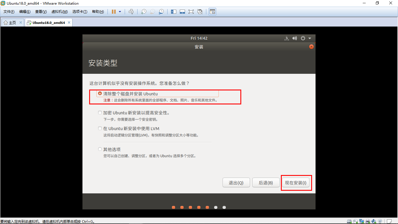 (4)在vmware虚拟机上安装ubuntu18.04