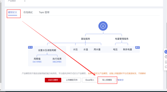 *tips:产品模型 用于描述设备具备的能力和特性。开发者通过定义产品模型,在物联网平台构建一款设备的抽象模型,使平台理解该款设备支持的服务、属性、命令等信息,如颜色、开关等。