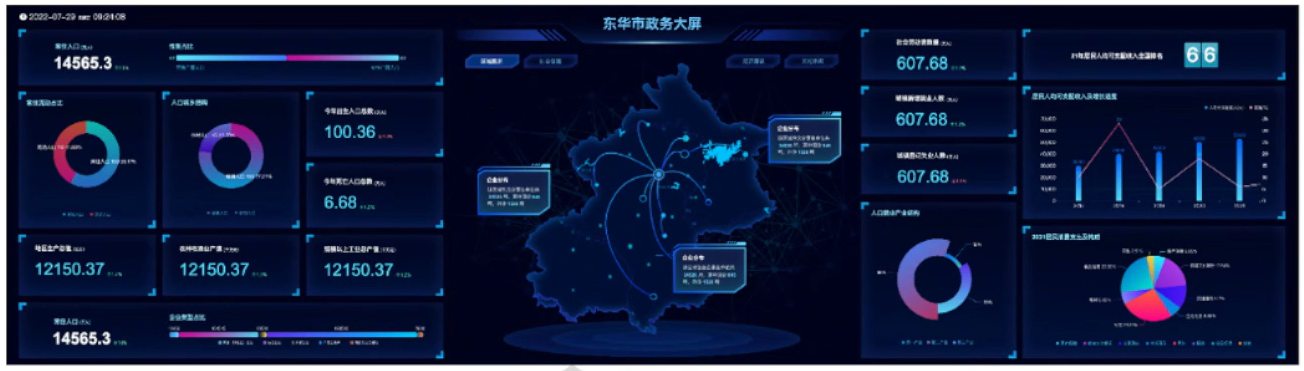 DMAX 业务大屏,通过一站式拖拉拽的数据可视化开发,在数分钟就可以构建一个业务大屏。它具有预制大屏模板、预制70+样式、拖拽开发、所见即所得、灵活扩展组件、快速数据集成、项目管理的关键能力。