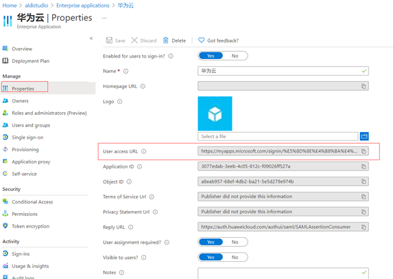 4.3 如何在Azure AD上配置使用IDP发起模式和华为云对接
