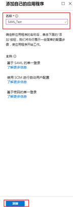 - 输入应用程序的名称,如“SAML_Test”,单击“添加”。