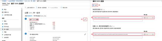- 在基本SAML配置中配置华为云的实体ID和断言使用者服务URL(ACS地址)。