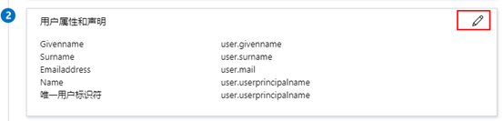 - 参考第二章步骤8,进入到Azure AD的用户属性及声明详细配置页面。