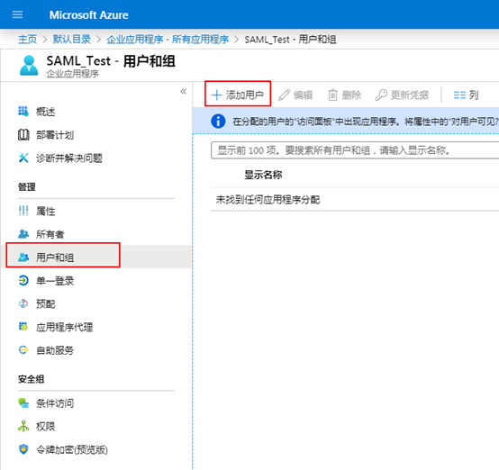 - 在“企业应用程序 – 所有应用程序”中,选择步骤4中添加的应用程序名称,例如选择“SAML_Test”。