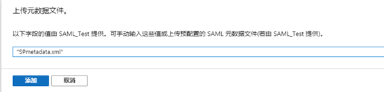 - 单击“上传文件”左侧的,选择第二章步骤12中下载的AzureAD的元数据文件。