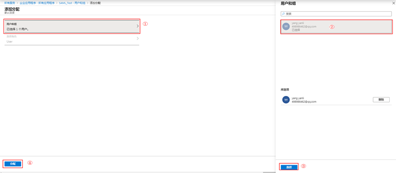 - 单击“用户和组”,选择成员后,单击“分配”。