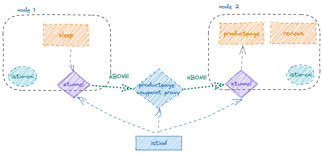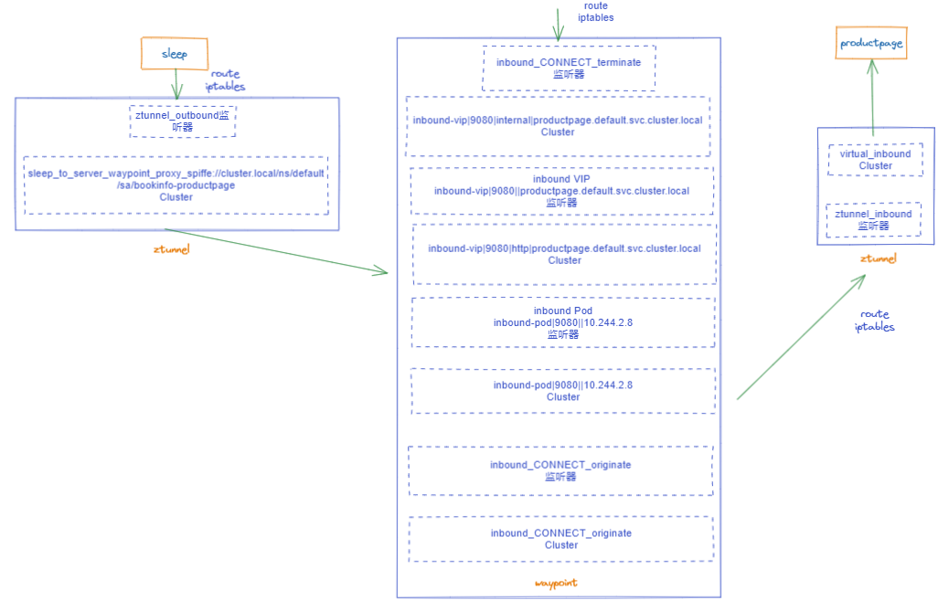 2. 发送侧ztunnel:将productpage请求转发到waypoint