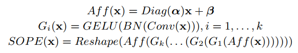 (2)连续重叠的块嵌入模块SOPE:同目前其他主流的ViT一样,本文同样采用了卷积操作进行patch embedding。同时本文还引入了额外的仿射变换操作,增加在小数据集上训练时的稳定性。