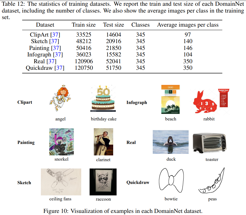 (2)DomainNet数据集的统计信息,以及各个方法在DomainNet数据集上的效果如下,同样展现了本文方法在精度上的优越性。