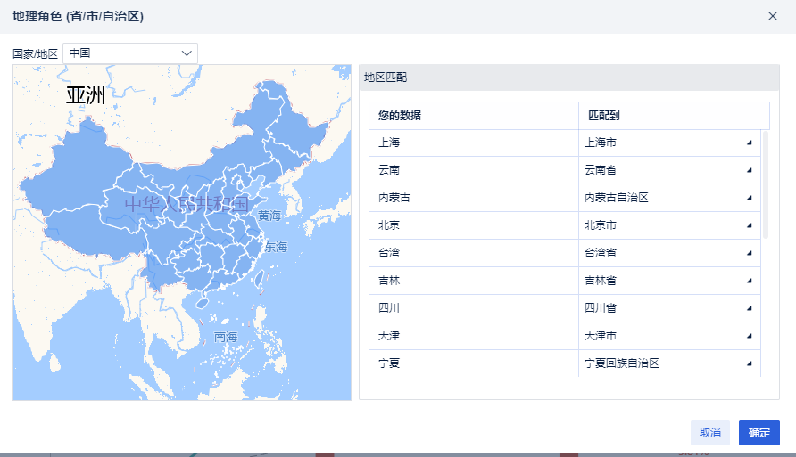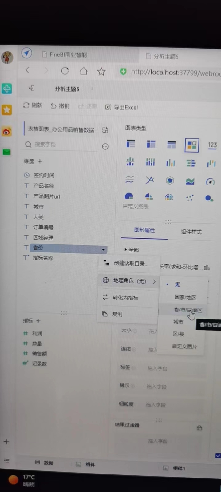 先将维度中的省 按下图所示转成地理角色 省/市/自治区:
