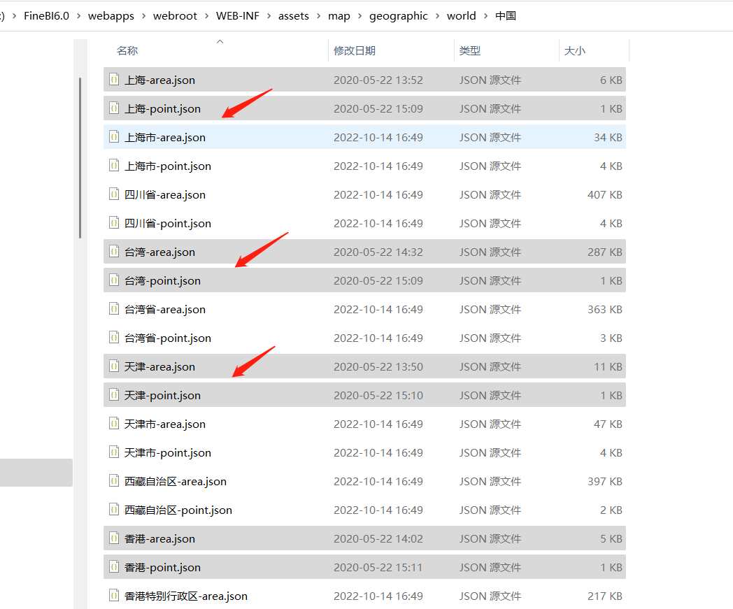 打开后将json文件解压到 E:\FineBI6.0\webapps\webroot\WEB-INF\assets\map\geographic\world\中国 目录: