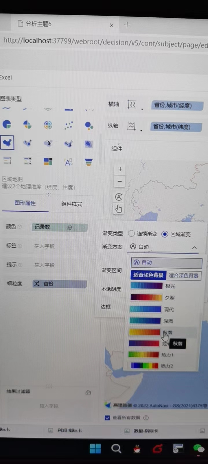 将 指标中的记录数拖入颜色,并选择区域渐变-秋落: