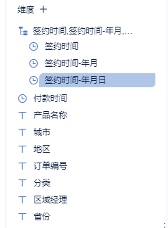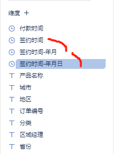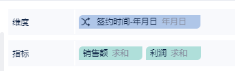 新增一个组件,复制维度中签约时间字段为 签约时间-年月,签约时间-年月日: