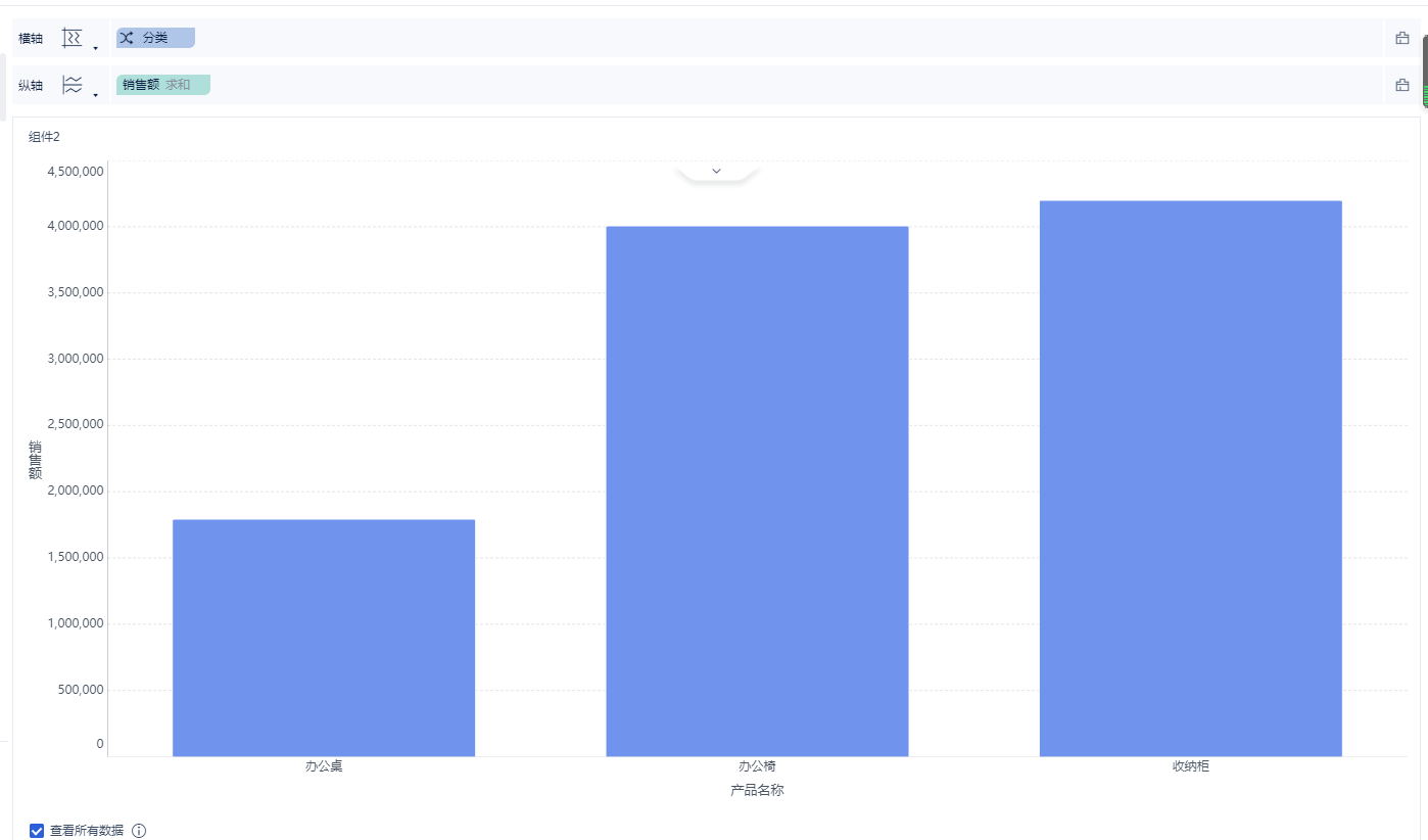 也可以点击 横轴的钻取目录图标,切换维度 为 产品名称: