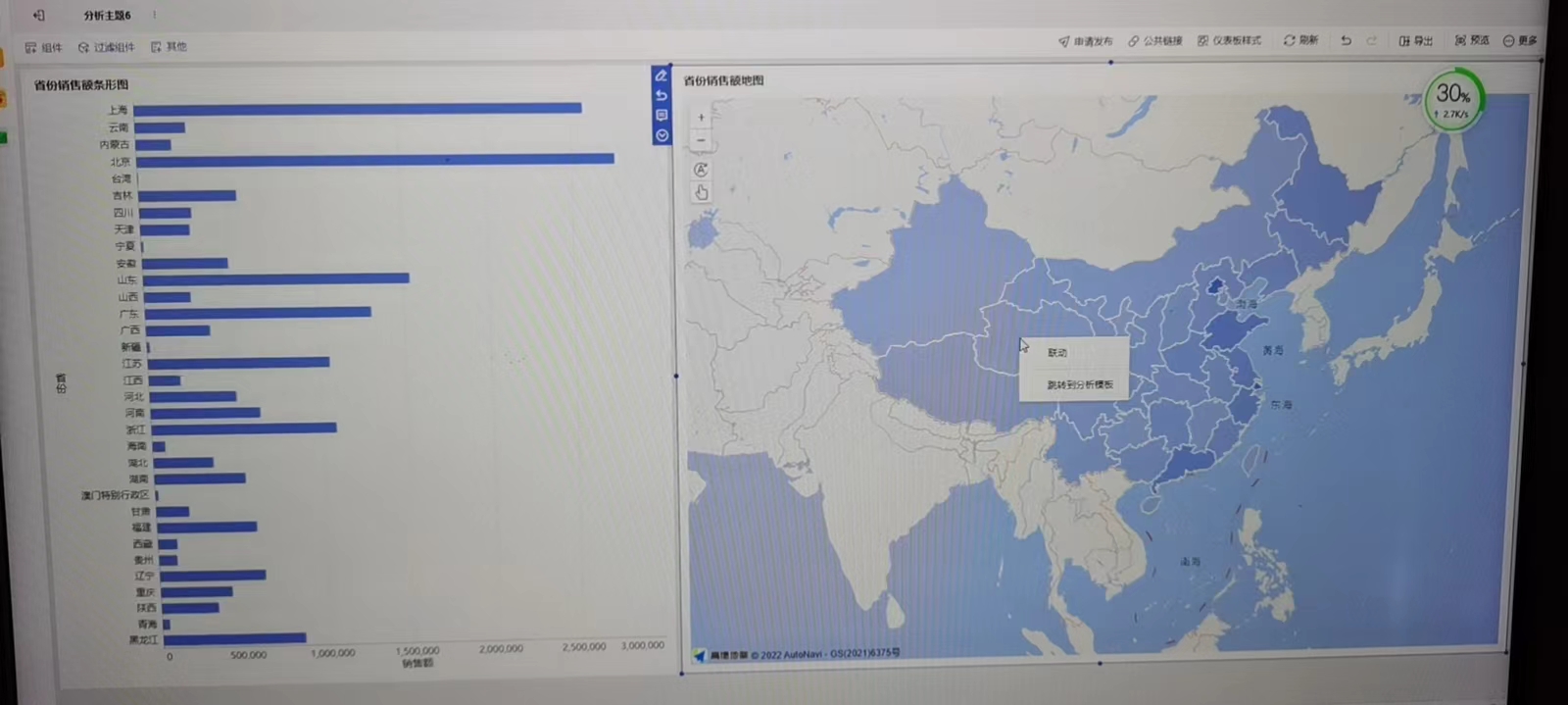 点击 跳转到分析模板,就可以跳转到 前面制作好的仪表板,而且只会显示该省的相关信息: