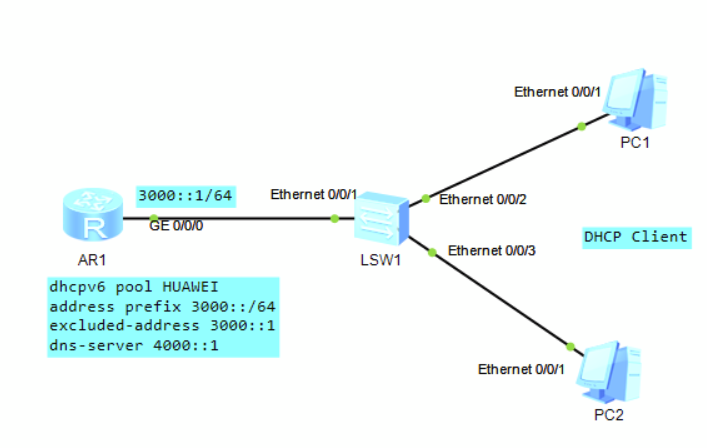 [AR1-dhcpv6-pool-HUAWEI]address prefix 3000::/64