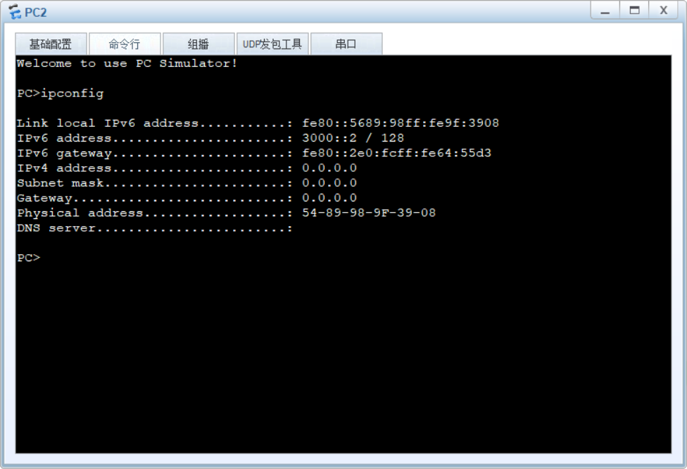 由实验结果可以看出,PC1与PC2已经成功的获得了AR1动态分配的IPv6地址!