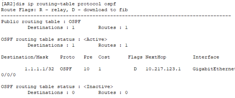 [AR2-ospf-1-area-0.0.0.0]network 192.168.1.0 0.0.0.255