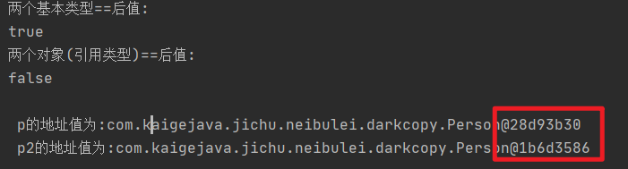 System.out.println(" \n p的地址值为:"+p +" \n p2的地址值为:"+p2.toString());