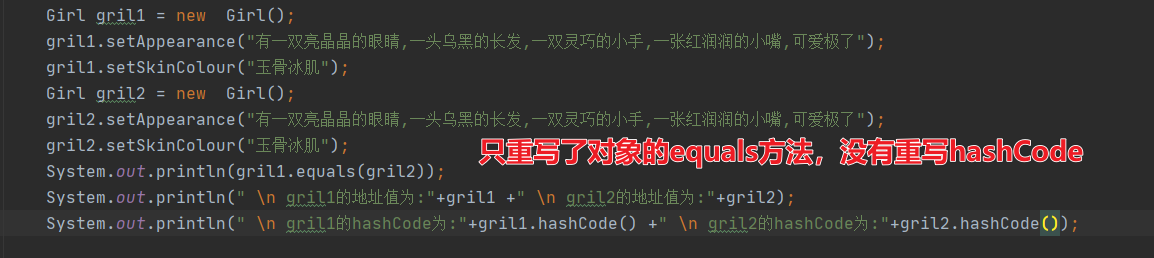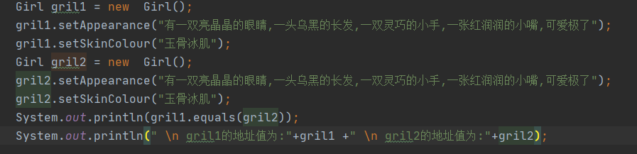 但是实际上,两个Girl对象在堆中的内存地址值不一样。
