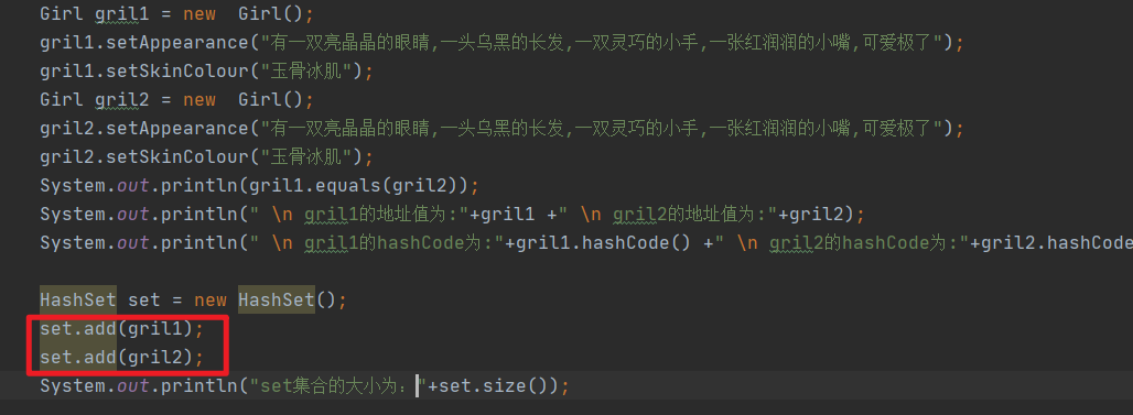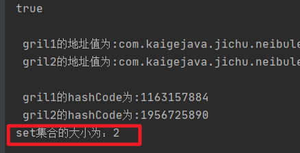 因为在set.add()方法时候,先判断hashcode值,从上图我们可以看到,两个对象hashCode值不相等。set就认为不是一个对象,所以大小就是2了。