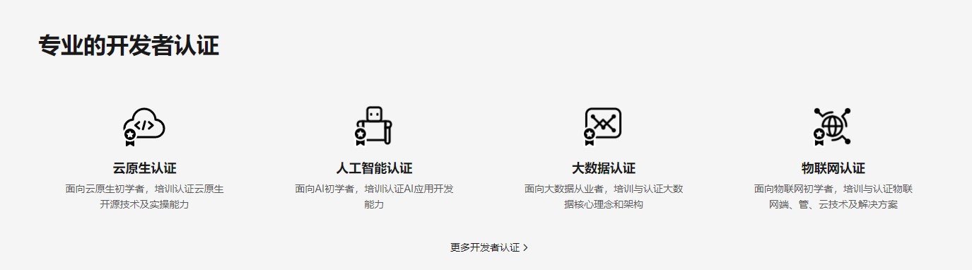 华为云将华为内部的可信认证能力向开发者外溢,在云原生、人工智能、大数据、物联网等技术领域打造可信的开发者认证体系。