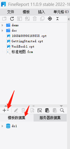 点击左边的模板数据集,点击+: