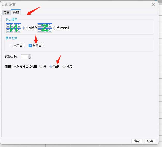 5)将报表页面设置为垂直居中,并根据设置单元格内容自动调整行高