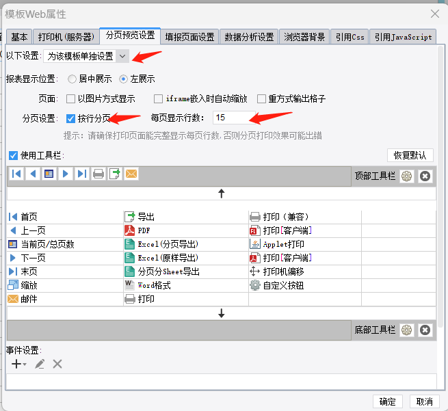 在弹出的页面中选择分页预览设置,并按下图所示填写内容: