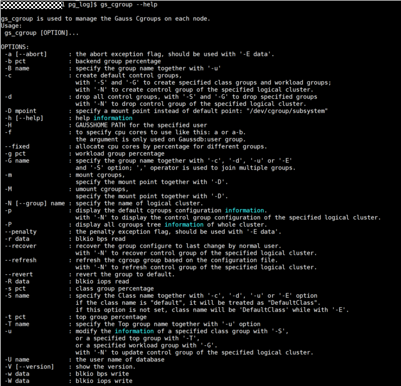 gs_ssh -c " gs_cgroup -c -S group2" (创建第二个控制组group2)