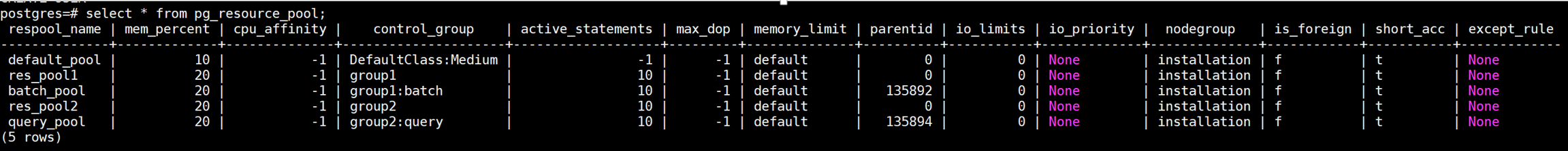 通过视图pg_resource_pool可以看到自己创建的资源池