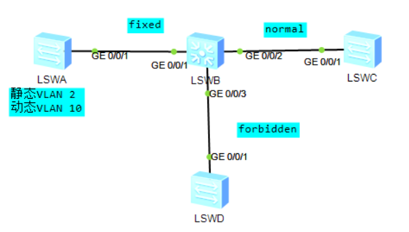 fixed:不允许动态VLAN在端口上注册或者注销,且只发送静态VLAN的声明消息。
