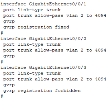 Normal:允许静态和动态VLAN注册,同时发送静态VLAN和动态VLAN的信息,缺省情况下,gvrp接口注册的模式为normal。