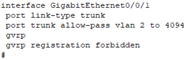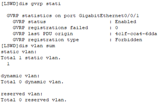 [LSWC-GigabitEthernet0/0/1]gvrp registration forbidden