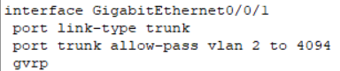 [LSWC-GigabitEthernet0/0/1]gvrp