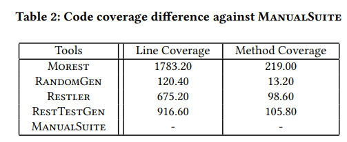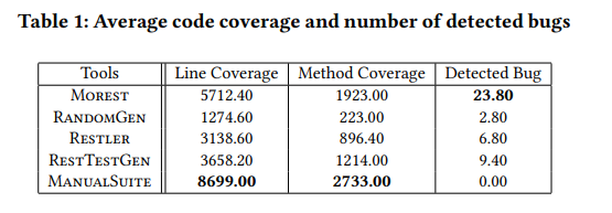 • 由人类专家和自动化工具创建的测试用例可以相互补充。尤其是手动创建的测试用例擅长成功请求 RESTful API,而自动创建的测试用例擅长覆盖角落用例。因此,提高测试性能需要人类专家和自动化工具之间的良好协调。