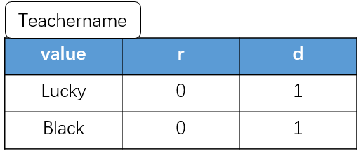 对于Teachername这一列,在r1中,Teachername已定义,且它是第一条出现的记录,所以R=0,d为当前定义深度,d=1。R2中与r1情况相同。