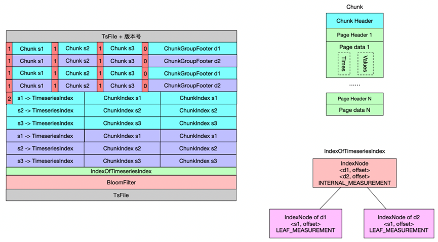 压缩率高:如图1-3所示,自研的Tsfile列式存储,一个chunk中保存着一个测点的一段时间的有序数据。同时在chunk块中进行Snappy压缩,由于chunk中的数据是有序,并且有序的时间戳压缩空间较大,因此可以增大压缩效率。 同时针对chunk块,也提供了一些编码方式,也可以大大节省空间。