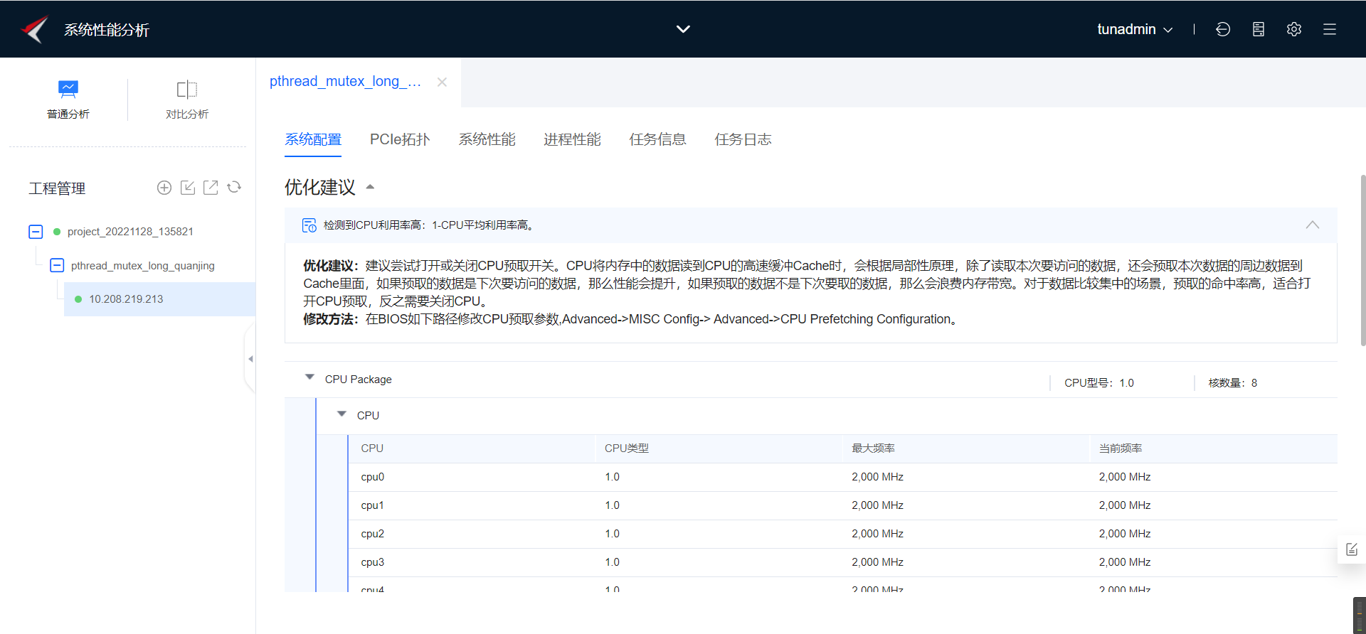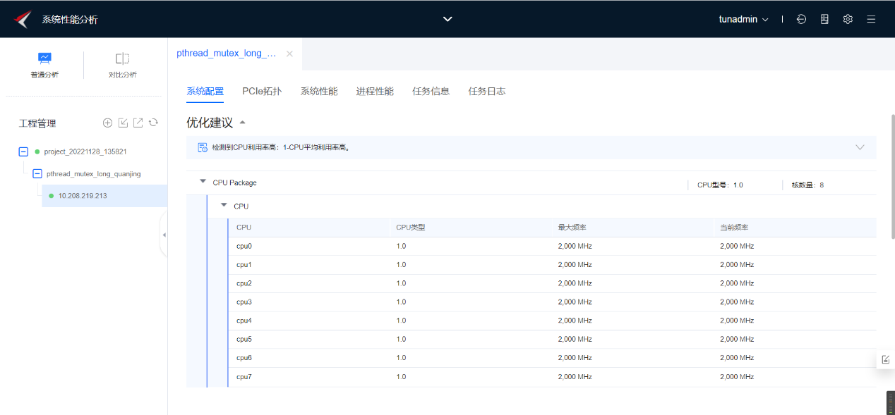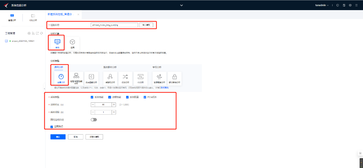 2. 利用鲲鹏性能分析工具创建系统全景分析任务,分析当前程序