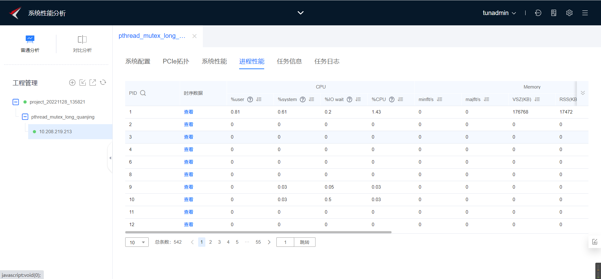 进程/线程分析结果总览截图如下所示,图中默认排序是按照PID/TID升序排列。