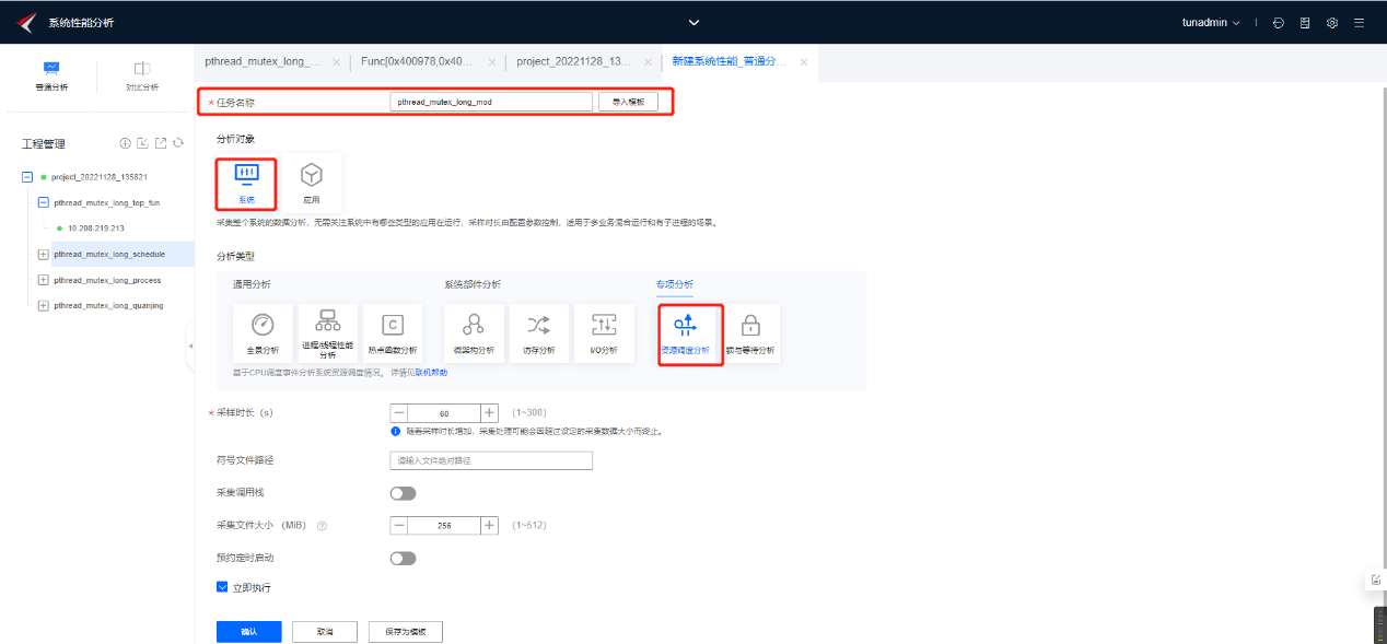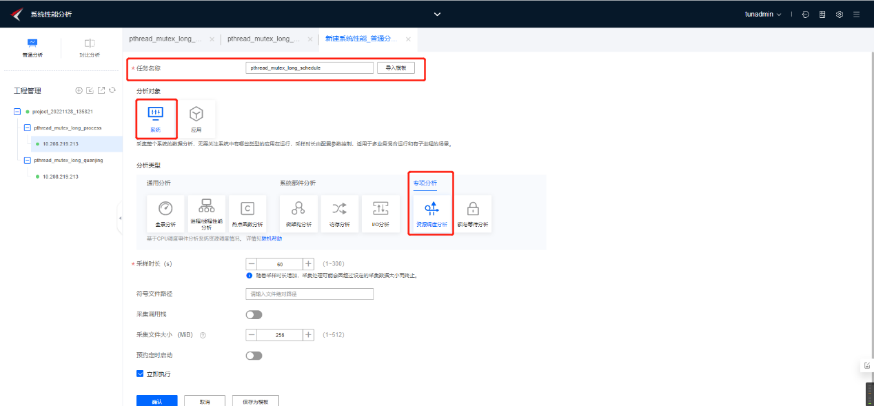 创建系统资源调度分析任务,并启动运行,如下图所示: